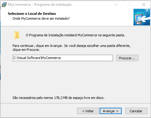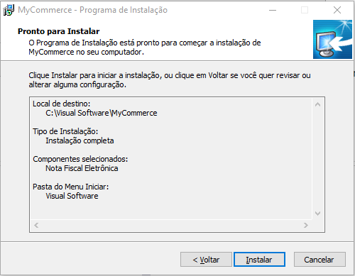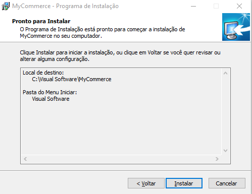 Após terminar o processo de instalação do "MyCommerce_Full.exe", copiar a pasta "DLLS" para a raiz do sistema ("C:/Visual Software/")