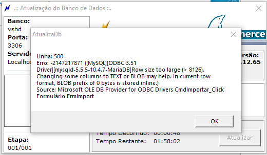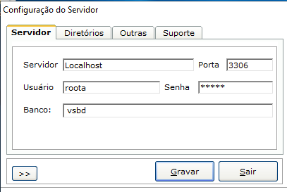 Nessa tela informar os dados do servidor de banco de dados (endereço, porta, usuário, senha e nome) e clicar em "Gravar"